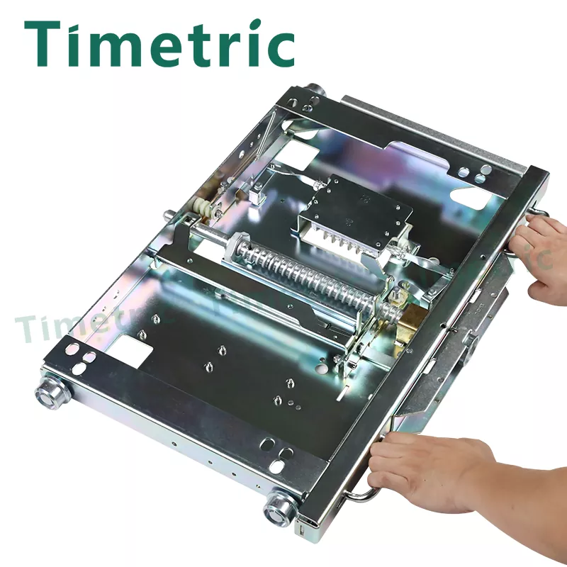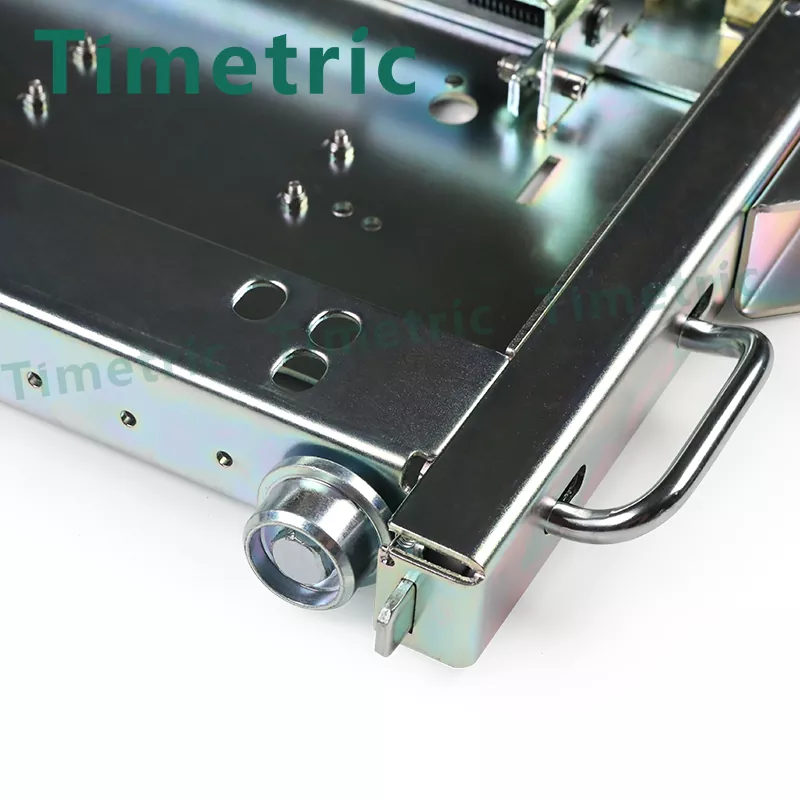 A Timetric Electric produz chassis VCB internos de média tensão de 10kV projetados especificamente para disjuntores a vácuo do tipo carrinho de mão. Esses carrinhos funcionam junto com o chassi VS1 e o chassi VS1 de cinco provas, juntamente com mecanismos internos e de intertravamento, para atender aos requisitos de intertravamento de "cinco provas" do GB3906. Permitem fácil posicionamento e fechamento do disjuntor, garantindo conexões corretas e evitando o fechamento acidental do contato de isolação.